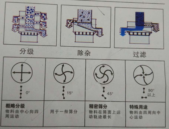化妝品原料通過(guò)輸送設(shè)備進(jìn)入篩機(jī),然后通過(guò)不同規(guī)格的篩網(wǎng),分出不同等級(jí)的物料或者雜質(zhì)由不同的出料口排出。大漢牌DH系列三次元振動(dòng)篩是由直立式振動(dòng)電機(jī)作為激震源,電機(jī)上下兩端安裝有偏心重錘,將電機(jī)的旋轉(zhuǎn)運(yùn)動(dòng)轉(zhuǎn)變?yōu)樗健⒋怪?、傾斜的三次元運(yùn)動(dòng)、再把這個(gè)運(yùn)動(dòng)傳遞給篩面,物料在這個(gè)力的作用下開始運(yùn)動(dòng)并通過(guò)不同規(guī)格的篩網(wǎng),由不同的出料口排出,由此達(dá)到分級(jí)、除雜或者過(guò)濾的效果。