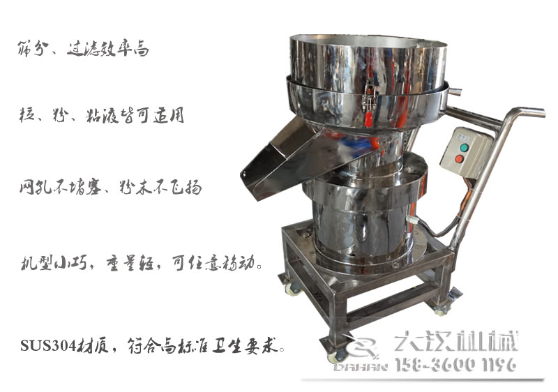 過(guò)濾篩是一種適用于各行業(yè)單層,小顆粒、粉、粘液處理生產(chǎn)量小或者雜質(zhì)少物料的振動(dòng)篩分、過(guò)濾設(shè)備。大漢牌推車(chē)式450型過(guò)濾篩,在原有過(guò)濾篩的基礎(chǔ)上,配備了小推車(chē),推車(chē)與機(jī)身融為一體,使本身機(jī)型小巧的450過(guò)濾篩移動(dòng)起來(lái)更加的方便,省時(shí)省力。