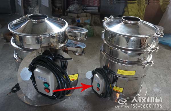 DH-400-1S型藥粉振動(dòng)篩是大漢公司根據(jù)客戶要求及客戶現(xiàn)場(chǎng)的情況,在大漢原有機(jī)器的基礎(chǔ)上加裝不銹鋼防護(hù)罩、啟停裝置和電源線延伸加長(zhǎng)到5米。