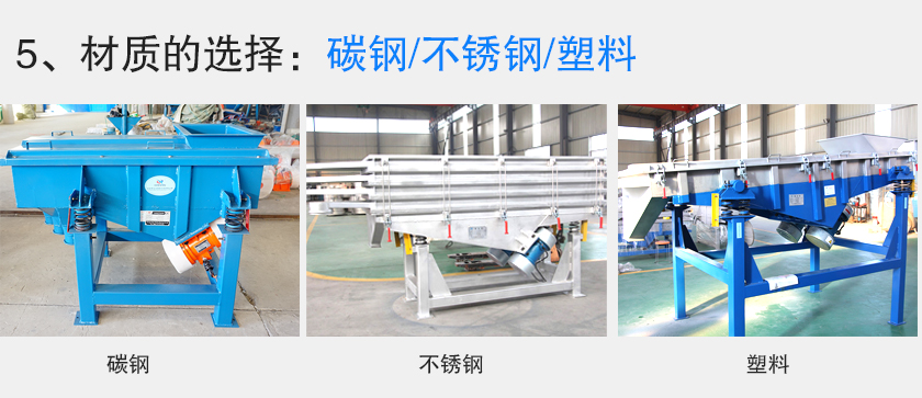 如果用戶篩分的物料是運(yùn)用到醫(yī)藥、化工、食品等行業(yè),可以優(yōu)先選擇304不銹鋼材質(zhì)的振動(dòng)篩,如果篩分物料是運(yùn)用到化工行業(yè)中,且具有酸堿性、腐蝕性的話,一定要避免選用一些不銹鋼等金屬材質(zhì)的振動(dòng)篩,必須選擇機(jī)身材質(zhì)為聚丙烯PP材料的振動(dòng)篩。